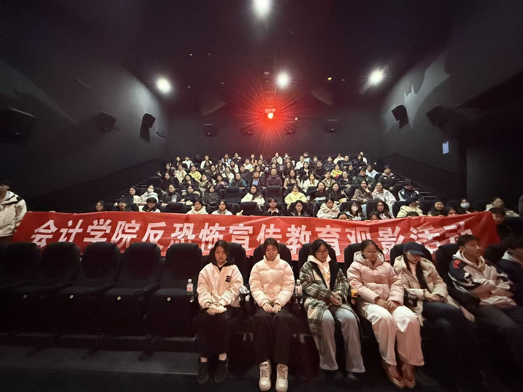 为进一步深化全民国家安全教育,增强会计学院学生“知恐、识恐、防恐、反恐”意识,营造我院全体师生主动参与反恐工作的良好氛围,2025年12月11日,在美港激光影城组织集中观看反恐主题宣传教育影片《得闲谨制》。