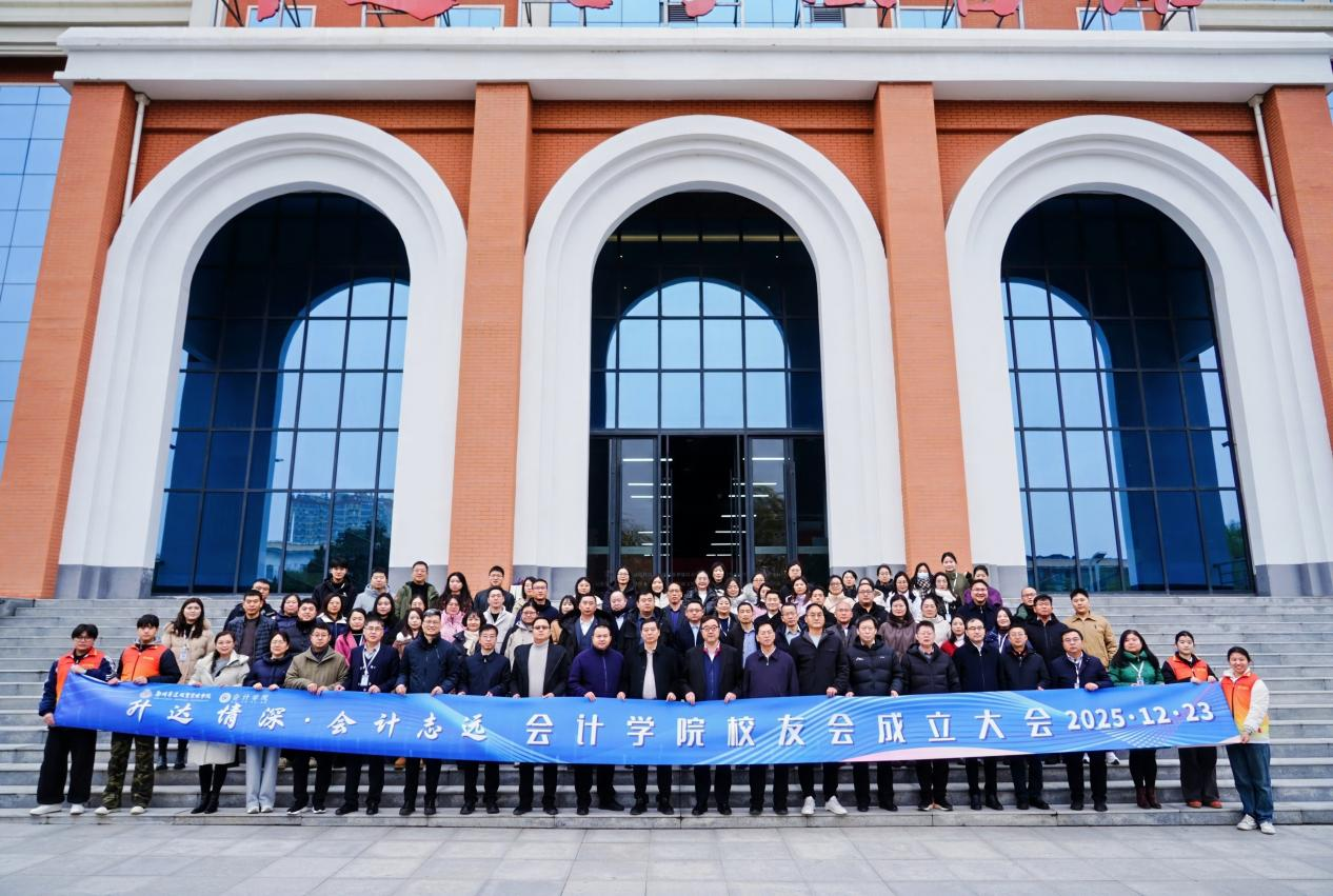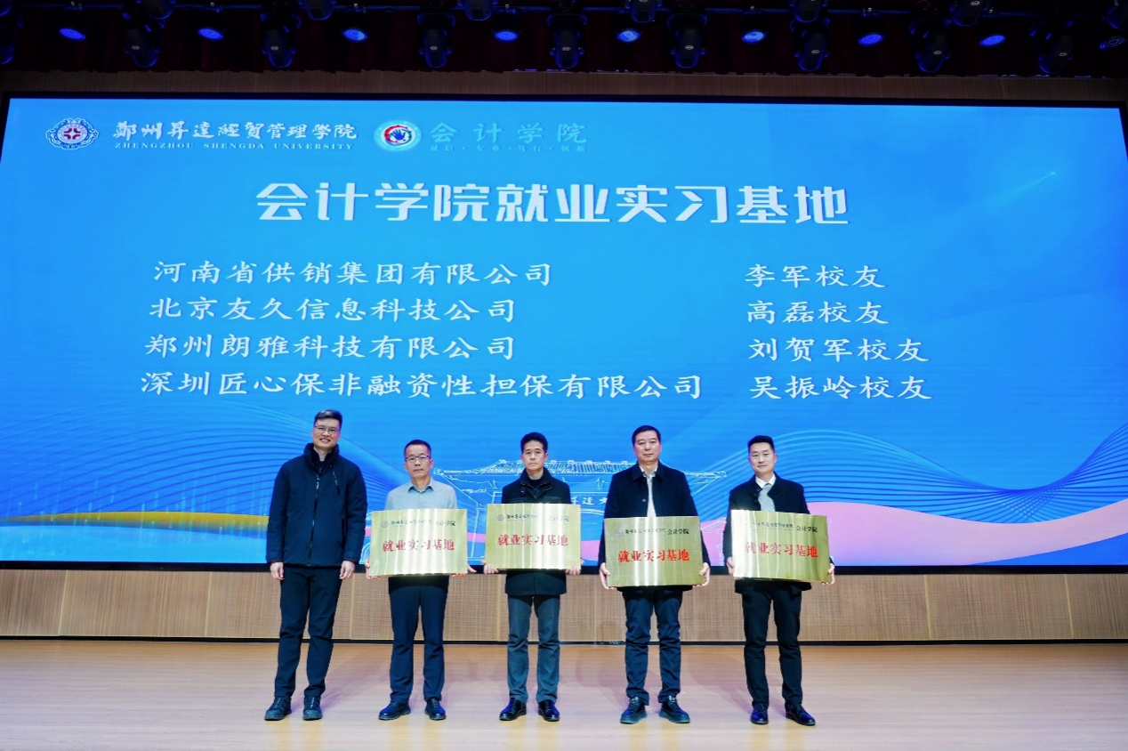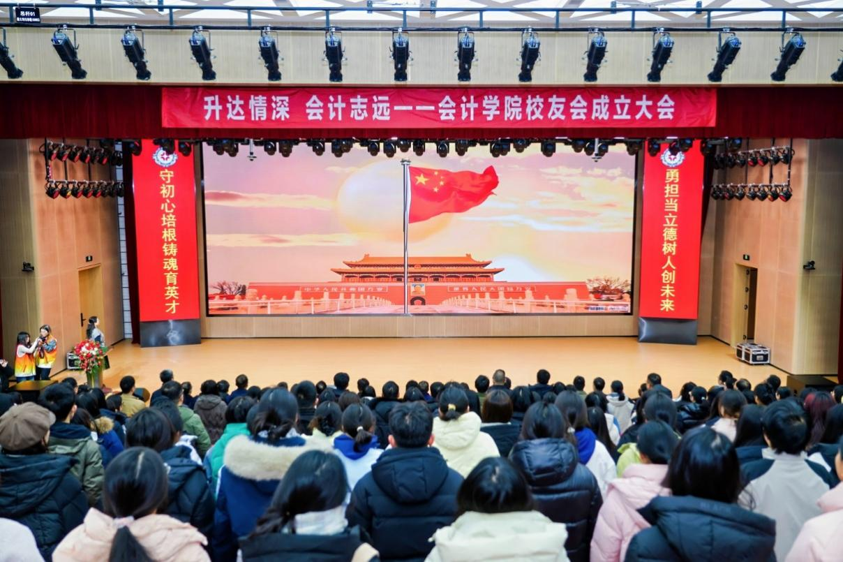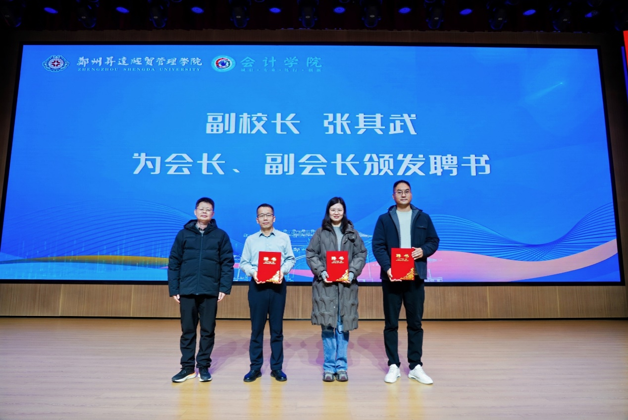 2025 年 12 月 23 日上午,郑州升达经贸管理学院会计学院校友会成立大会在图书馆三号报告厅成功举行。董事长王新奇博士,校党委副书记、副校长、工会主席张金安,校党委委员、副校长张其武,副校长方建印,登封校区党工委书记沈定军等校领导出席大会。参加大会的部门主管有董事会办公室主任、科研处处长杨存博,校长办公室主任郝艳海,就业处处长、校友办主任冯科,财务处长张延霞,登封校区管委会办公室主任、党建工作部部长刘昊,校地合作处处长王彦雨,教务处副处长袁向阳。参加大会的校友有:升达全国校友总会会长周延翟,升达全国校友总会秘书长、会计学院校友会会长牛草,升达河南校友会会长、会计学院校友会顾问邵明,升达河南校友会秘书长陈帅甫,会计学院校友会顾问团成员李军、高磊、刘东坡,副会长刘贺军、芦艳萍,秘书长支学雷,副秘书长滑智鹏、张千,华中校友联络人李鹏伟、杨志超,留校校友联络人何保国老师、崔杰,理事成员刘锦燕,以及来自各地的优秀校友代表和在升达工作的校友们。参加大会的还有会计学院的院长王宝庆,党委书记张蕾,副院长兼党委副书记张新成,副院长毕鹏翾,党委副书记陈刚,教学秘书李永利及在校师生代表等。