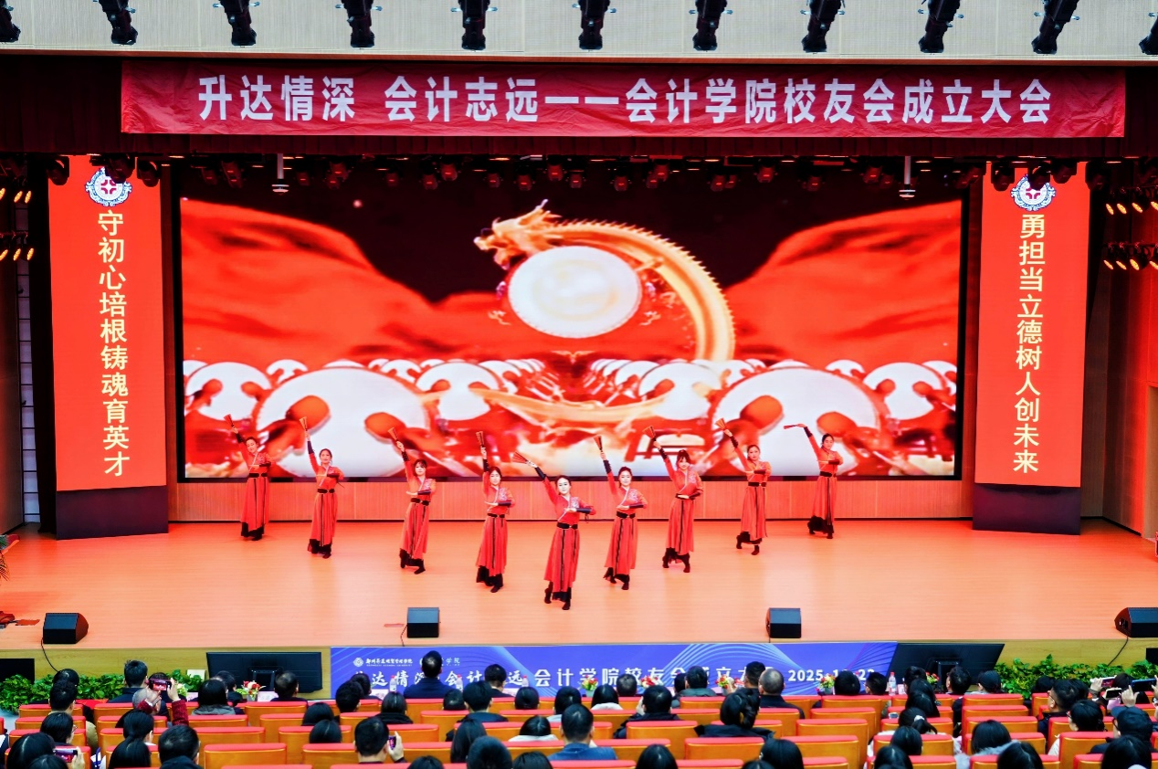 大会临近尾声,在校生代表登台献演舞蹈《会启新程・舞绽芳华》,以洋溢着青春朝气与蓬勃活力的舞姿,向校友会的成立致以祝贺。
