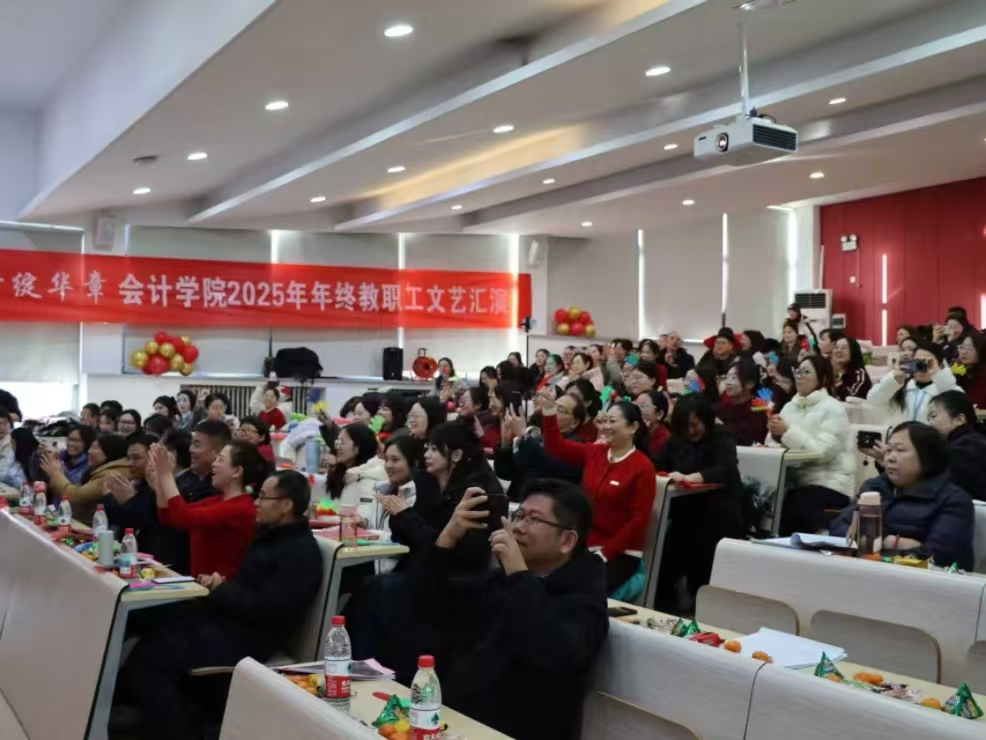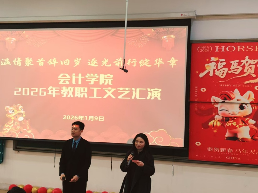 为展现会计学院教职工团结奋进的精神风貌,充分展示会计学院教职工的凝聚力和风采,在2026年到来之际,1月9日上午9点,会计学院工会“温情聚首辞旧岁,逐光前行绽华章”——2026年教职工文艺汇演活动在教学四号楼118教室精彩上演,会计学院全体党政领导及全体教职工参与此次汇演,参加此次活动的嘉宾有体育学院党委书记韩炎涛、校工会办公室主任王凯。