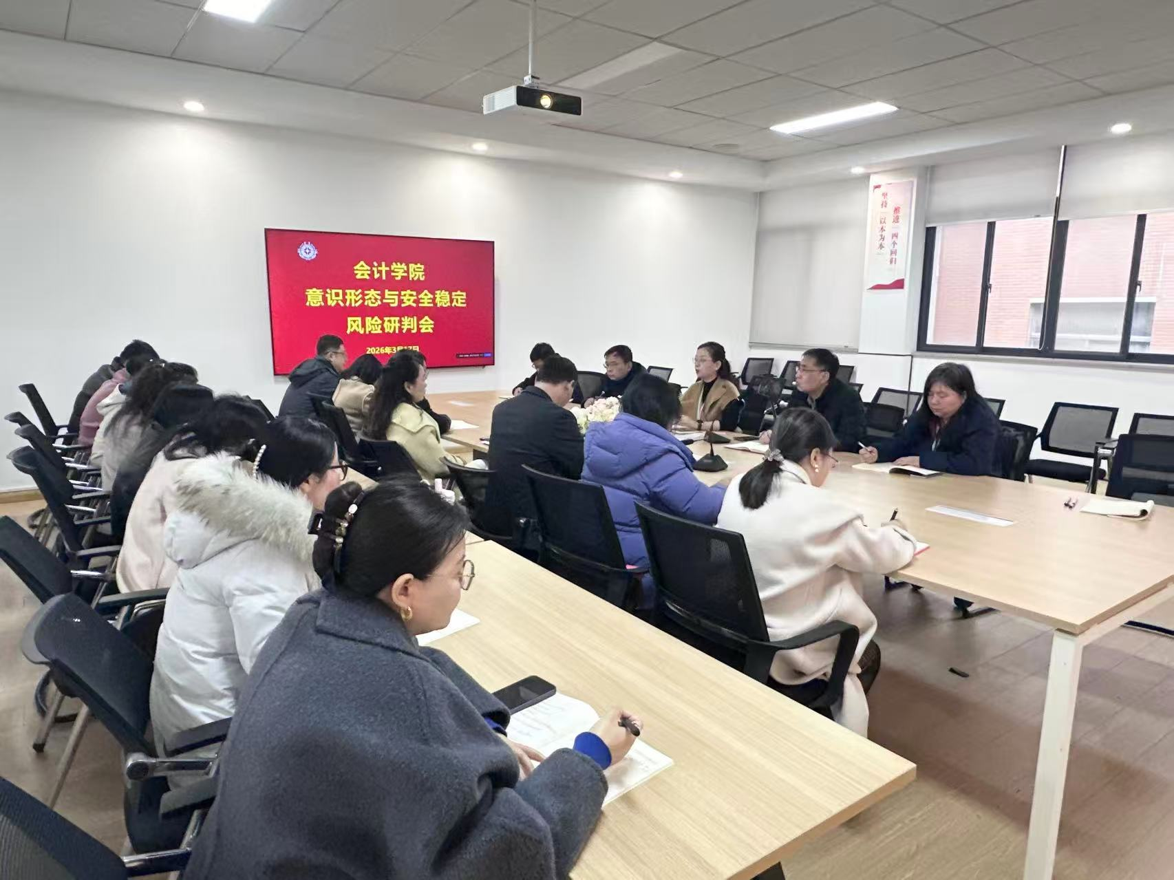2026年3月17日,会计学院党委在教学4号楼209会议室召开意识形态与安全稳定风险研判会。学院党委书记张蕾、院长王宝庆、副院长张新成、毕鹏翾、学院党委委员和全体党支部书记参加会议。学院党委书记张蕾主持会议。