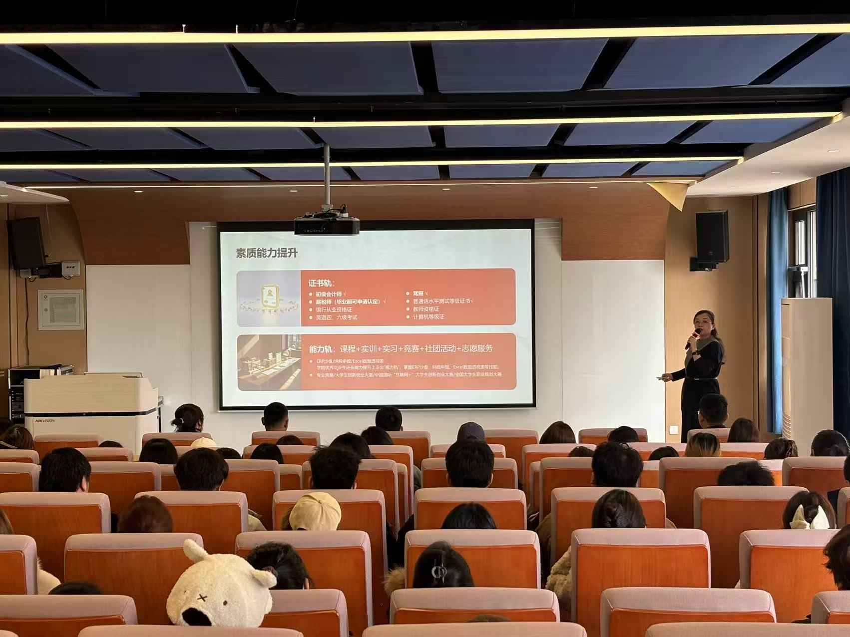 她强调,同学们应以考证促进学习,鼓励大家积极报考初级会计师证书,并详细介绍了初级会计师的考试政策及备考建议;她鼓励大家以赛促练,主动参与专业竞赛、创新创业实践及志愿服务,在实践中全面提升综合素质;同时,她动员大家积极投身专升本深造,并就报考专业选择、考试内容及备考规划给予了细致指导,为同学们的科学备考指明了方向。
