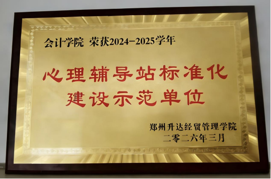近日,我校心理健康教育中心依据相关文件要求,完成了对全校心理辅导站标准化建设及各学院心理健康教育工作的综合考核。经严格评审,会计学院被评为“2024-2025学年心理辅导站标准化建设示范单位”。
