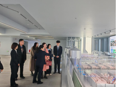在牧原集团相关负责人陪同下,会计学院一行参观了牧原大厦企业办公环境及智能展厅。牧原食品股份有限公司始创于1992年,2014年上市,现已形成集饲料加工、生猪育种、生猪养殖、屠宰加工为一体的猪肉产业链。学院领导在参观中表示,牧原集团财务管理的精细化、智能化水平令人印象深刻,这为学院优化人才培养方案、强化实践教学环节提供了重要参考。