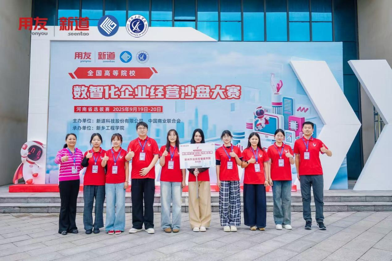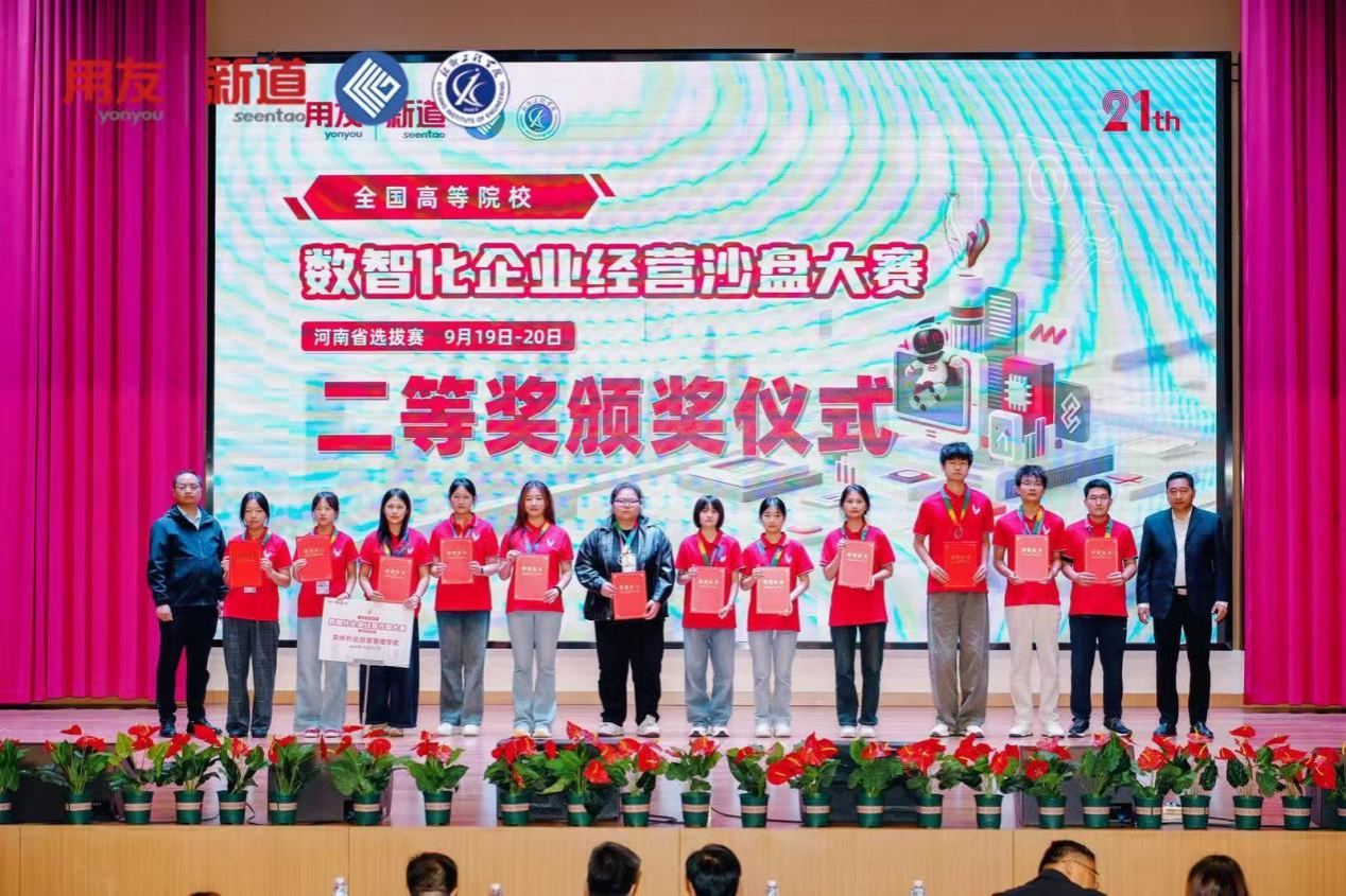 2025年9月19日至20日,由河南省教育厅指导、中国商业联合会与新道科技股份有限公司联合主办、新乡工程学院承办的“全国高等院校数智化企业经营沙盘大赛河南省选拔赛”成功举办。会计学院ERP沙盘协会派出两支代表队参赛,在指导教师崔杰与孟嘉玮的带领下,经过激烈角逐,最终一支队伍脱颖而出,荣获二等奖。