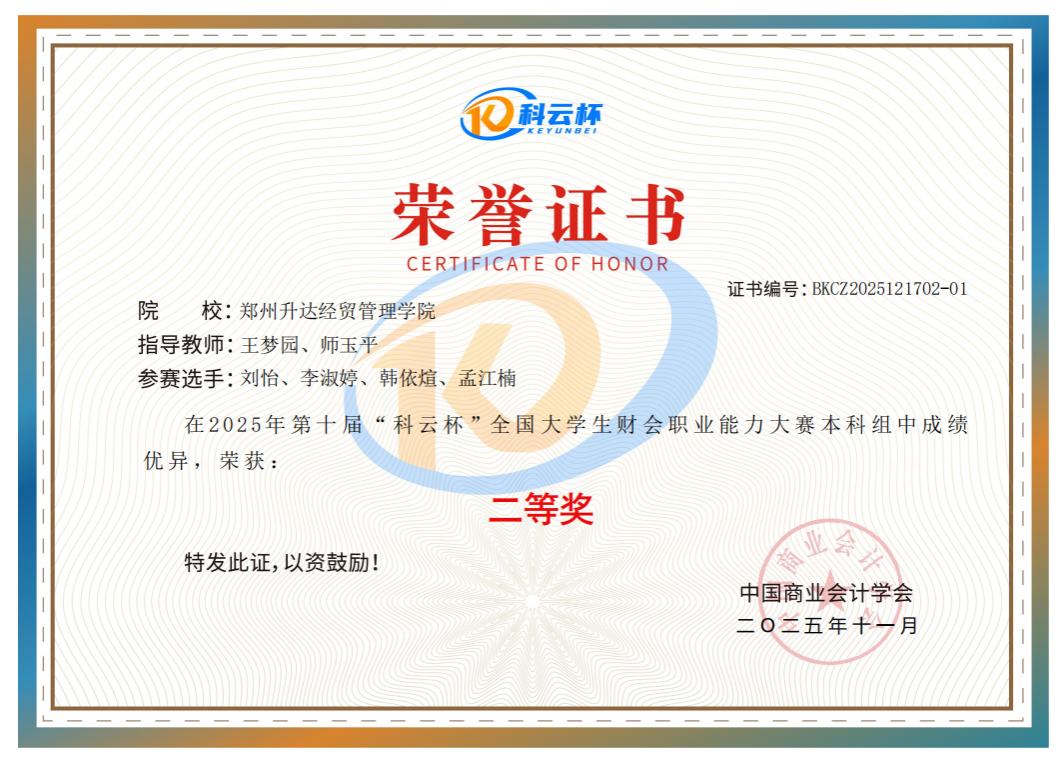 此次获奖不仅是参赛学生勤奋努力和指导教师精心培育的成果,更是会计学院近年来大力推进专业建设和人才培养模式改革的体现。未来,会计学院将继续坚持为党育人、为国育才,紧跟国家科技发展新趋势和产业发展新需求,持续推动数智化财会人才培养质量的全面提升,为建设教育强国、科技强国、人才强国贡献力量。