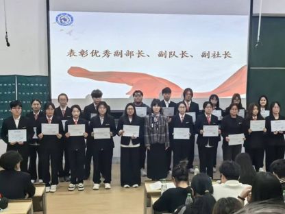 紧接着,第30届团委副书记王一涵,学生会主席朱立娜,社团管理中心主任张灏依次对过去一年工作进行总结。随后,大会进行到激动人心的颁奖环节。由刘瑞雯老师、董婉婉老师、胡淑娟老师、陈刚老师分别为本学年获得优秀副部长、副队长、副社长,优秀部长、队长、社长,优秀部门、社团的集体和个人颁发荣誉证书,并为第30届主席团成员颁发聘书与纪念品。