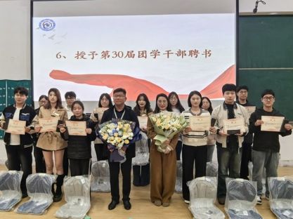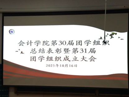 青春聚力启新程,奋楫笃行向未来。为表彰会计学院第30届团学组织成员和激励第31届团学组织成员们,10月16日晚18:20由会计学院团委主办的会计学院第30届团学组织总结表彰暨第31届团学组织成立大会在教学四号楼118教室隆重举行。出席本次大会的嘉宾有会计学院党委副书记兼团委书记陈刚老师,会计学院团委副书记胡淑娟老师,会计学院24级团总支书记董婉婉老师,会计学院25级团总支书记刘瑞雯老师以及两届团学组织的主要干部成员。