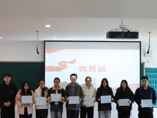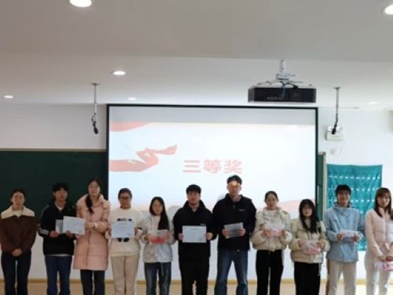 此次比赛的颁奖仪式于11月18日中午12:00在教学四号楼108教室举行,由31届学生会主席汤振全、团委副书记徐梦露、辅导员孟丽君老师、党委副书记兼团委书记陈刚老师为本次比赛的优秀奖、二等奖、三等奖以及一等奖颁奖。