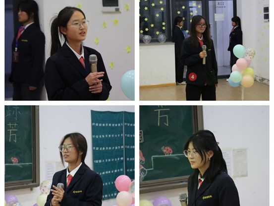 最后的环节是最激动人心的颁奖,王文锦、孙泽、岁一转、郎子曦分别为荣获优秀奖、三等奖、二等奖、一等奖的同学们进行颁奖,徐梦露、汤振全分别为获得精神文明奖、道德风尚奖的班级分别进行颁奖,最后陈刚老师为获得最佳组织奖的班级颁奖。