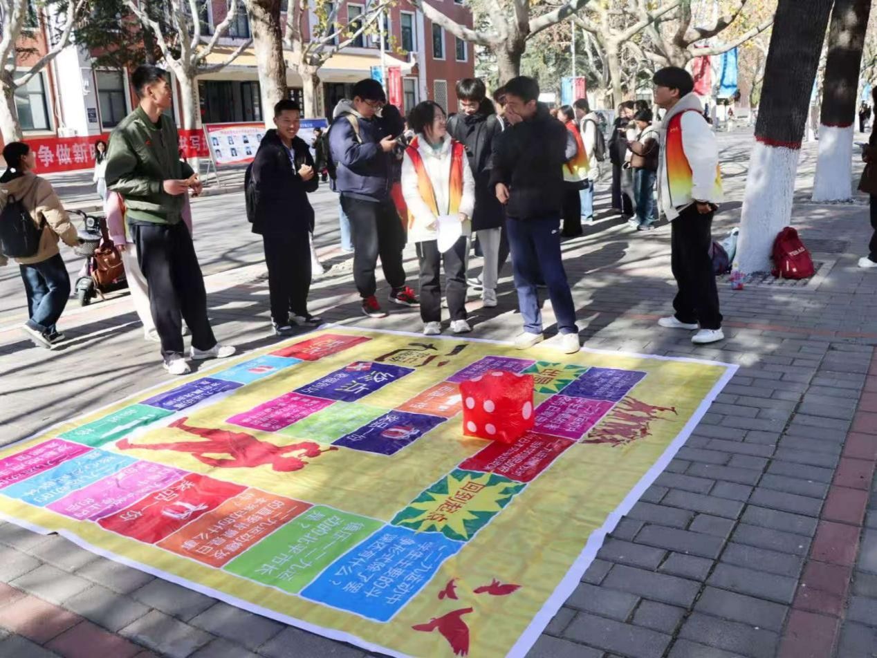 此次活动分为三个板块:在“以拼图汇心声,纪念‘—二·九’运动留言”活动中,用拼图块代替传统留言板,参与者在一块块拼图上写下自己的感悟和想法;在“爱国主义教育飞行棋,你我一起来答题”活动板块中,参与者通过掷骰子答题小游戏的形式,一步一步从起点走到终点,每一步都要完成相应的任务,恰似革命先辈般一步一步走向革命胜利;在“绘手账、传精神、担使命——纪念一二·九运动集体手账”板块中,各位参与者通过在集体手账上书写绘画,描绘出自己了解的革命历史和爱国诗词。这一系列活动在铭记“一二·九”精神的同时又进一步增强了参与者的爱国热情。