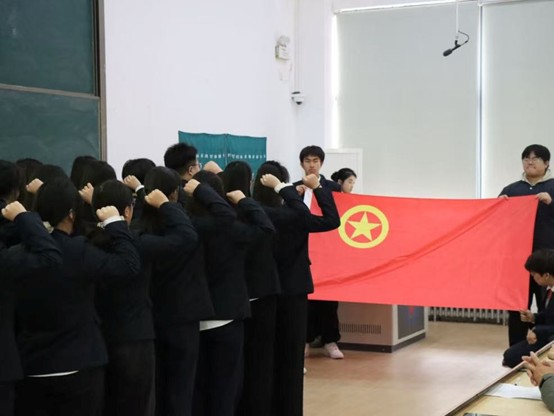 最后,陈刚老师讲话,他寄语全体新团员要以此为新起点,坚定理想信念,锤炼过硬本领,将青春奋斗融入共青团的事业中,在新时代新征程上书写无愧于时代的青春篇章。仪式在共青团团歌《光荣啊,中国共青团》的尾韵中圆满结束,而一场属于青春与时代的远征,正随那旋律悄然启程。