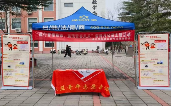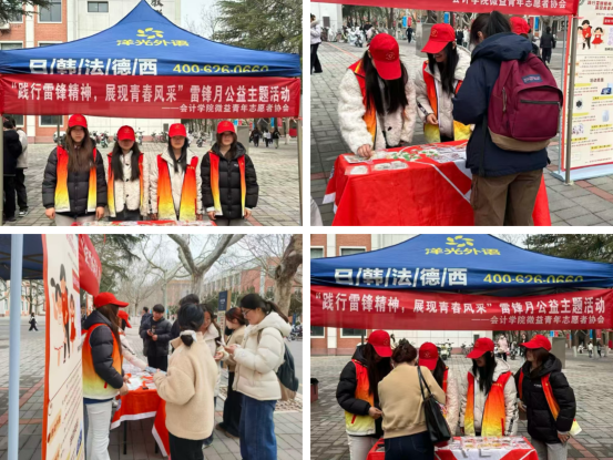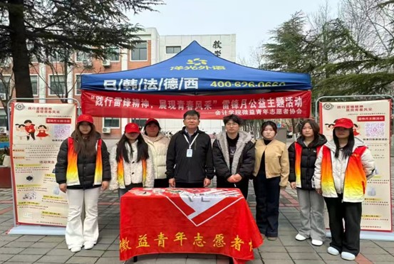 为践行雷锋精神,弘扬志愿服务精神,3月19日至20日,由会计学院团委主办、会计学院微益青年志愿者协会承办的“践行雷锋精神,展现青春风采”学雷锋志愿服务月公益主题活动在龙湖食府对面铺砖路上开展。指导老师陈刚全程在场指导,全体协会成员积极参与本次活动。