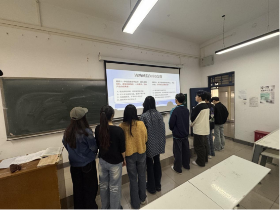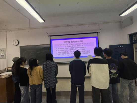 为深入宣传贯彻国家学生资助政策,强化资助育人实效,引导广大学生知政策、懂感恩、守诚信、勇担当,近日,会计学院以班级为单位,在时金楼教室组织开展资助知识答题竞赛活动。我班8名同学积极参与本次竞赛,以赛促学、以学践行,让资助政策入脑入心,让感恩教育落地见效。