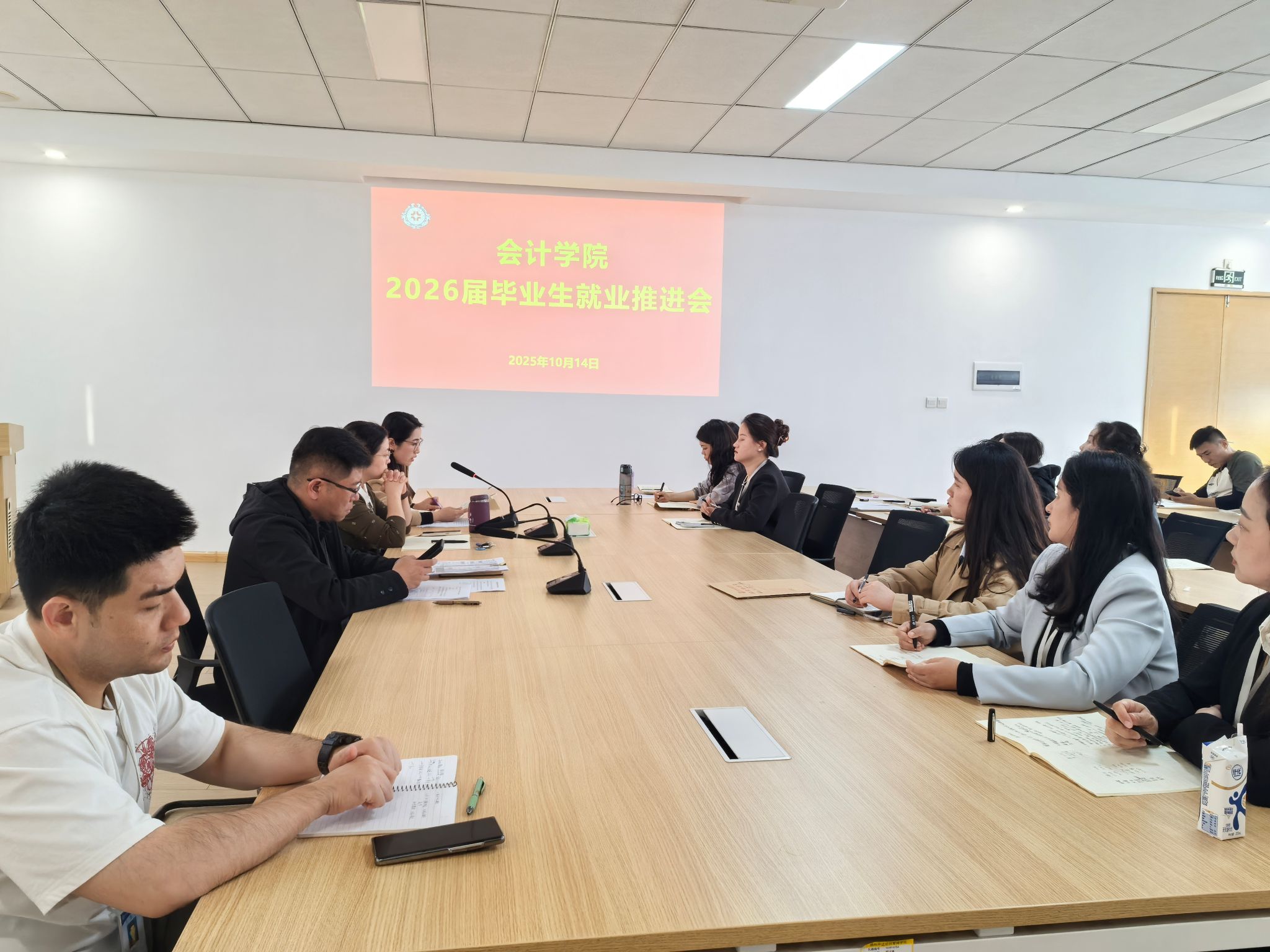 为积极应对当前就业形势,全面部署与推进2026届毕业生就业工作,10月14日,会计学院在教学4号楼209会议室召开2026届毕业生就业工作推进会。会计学院党委书记张蕾、副书记兼团委书记陈刚、就业专员刘爽以及全体辅导员参加会议。会议由学院党委副书记陈刚主持。