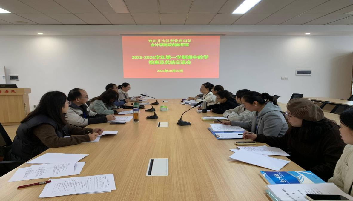 双创教研室于2025年10月29日下午在会计学院209室召开了“2025-2026学年第一学期期中教学检查及总结交流会”专题会议。本次会议由双创教研室主任闫本宗老师主持,全体教研室成员参加。