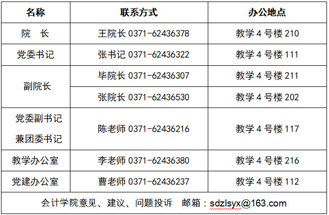 会计学院领导联系方式
